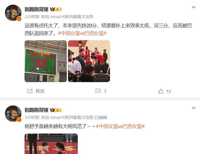 作者認為,本來中國女籃已經領先了快20分,結果替補上來由于得分效率太低沒有三分,反而被巴西女籃追了回來。這是末節場上局勢的轉折點,宮魯鳴作為主教練有兩大失誤。